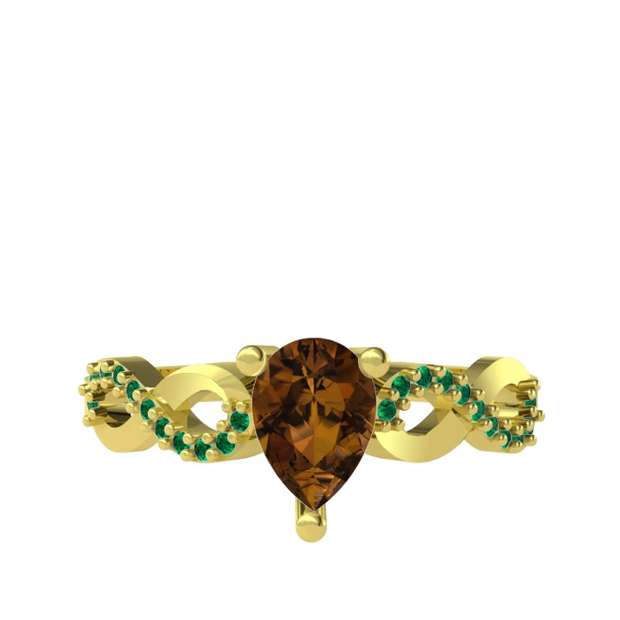 Dumanlı kuvars ve yeşil kuvars 8 ayar altın yüzük