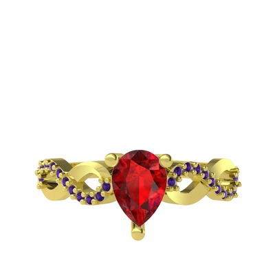Garnet ve ametist 925 ayar altın kaplama gümüş yüzük