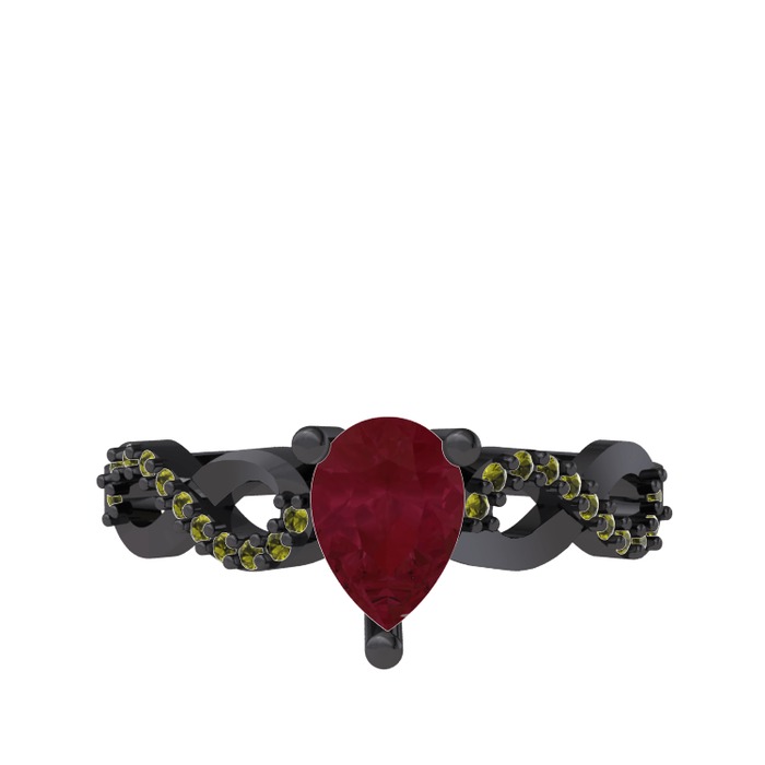 Kök yakut ve peridot 925 ayar siyah rodyum kaplama gümüş yüzük