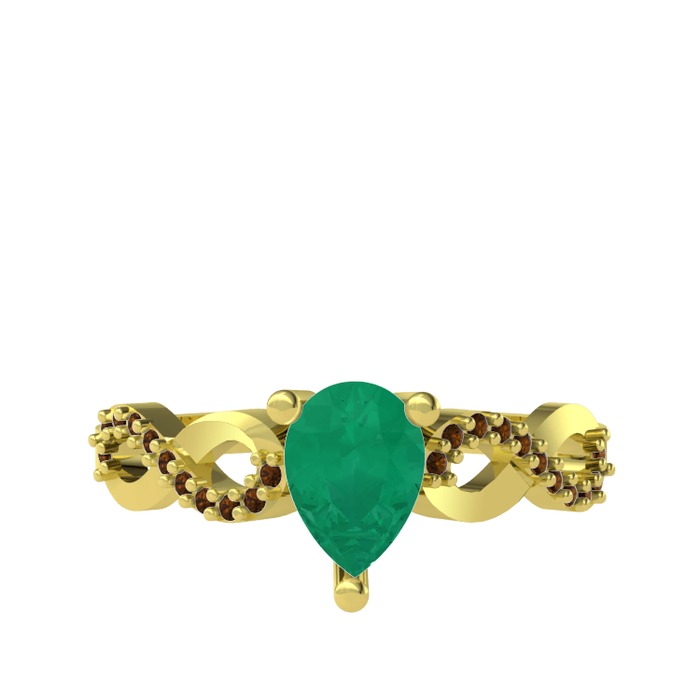Kök zümrüt ve dumanlı kuvars 8 ayar altın yüzük
