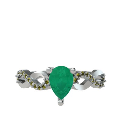 Kök zümrüt ve peridot 8 ayar beyaz altın yüzük