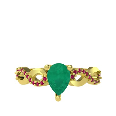 Kök zümrüt ve rodolit garnet 8 ayar altın yüzük