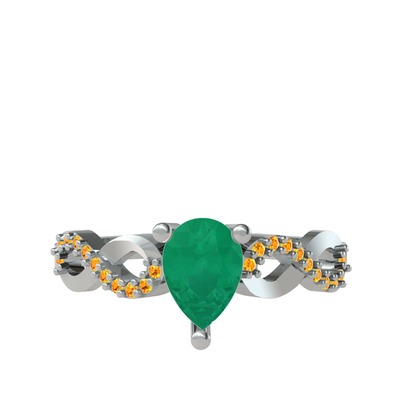 Kök zümrüt ve sitrin 8 ayar beyaz altın yüzük