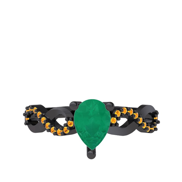 Kök zümrüt ve sitrin 925 ayar siyah rodyum kaplama gümüş yüzük