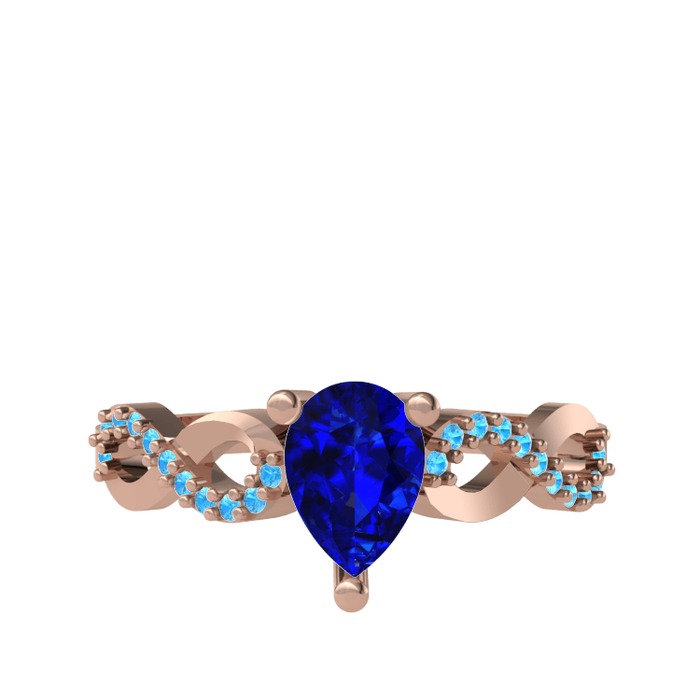 Lab safir ve akuamarin 925 ayar rose altın kaplama gümüş yüzük