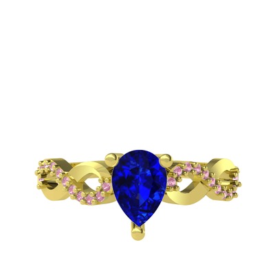 Lab safir ve pembe kuvars 14 ayar altın yüzük