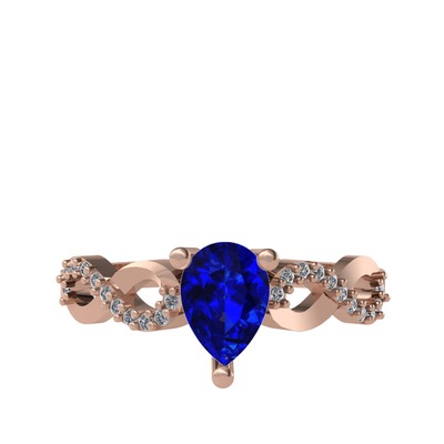 Lab safir ve pırlanta 18 ayar rose altın yüzük (0.176 karat)