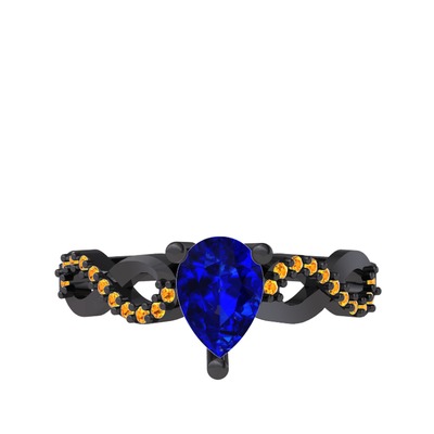 Lab safir ve sitrin 925 ayar siyah rodyum kaplama gümüş yüzük