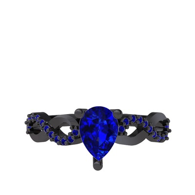 Lab safir 925 ayar siyah rodyum kaplama gümüş yüzük