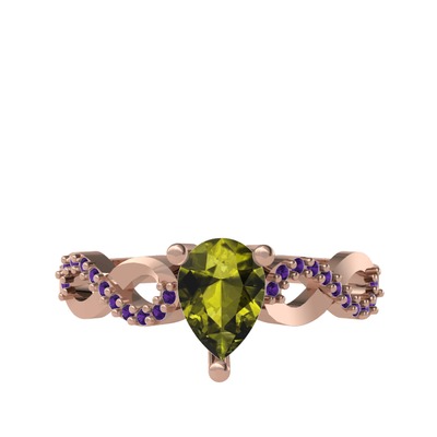 Peridot ve ametist 14 ayar rose altın yüzük