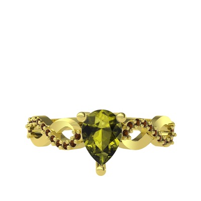 Peridot ve dumanlı kuvars 8 ayar altın yüzük