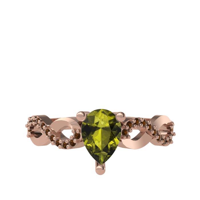 Peridot ve dumanlı kuvars 8 ayar rose altın yüzük