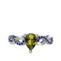 Peridot ve lab safir 18 ayar beyaz altın yüzük