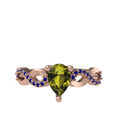 Peridot ve lab safir 925 ayar rose altın kaplama gümüş yüzük
