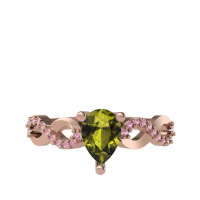 Peridot ve pembe kuvars 925 ayar rose altın kaplama gümüş yüzük