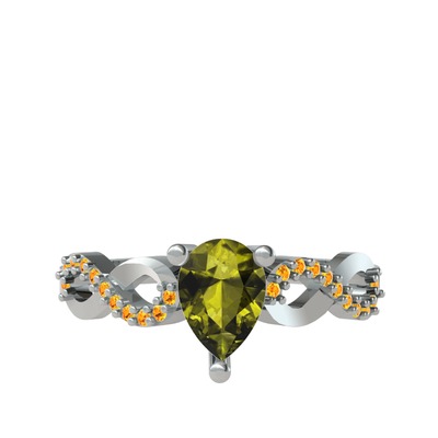 Peridot ve sitrin 18 ayar beyaz altın yüzük