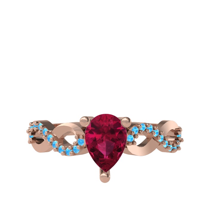 Rodolit garnet ve akuamarin 925 ayar rose altın kaplama gümüş yüzük