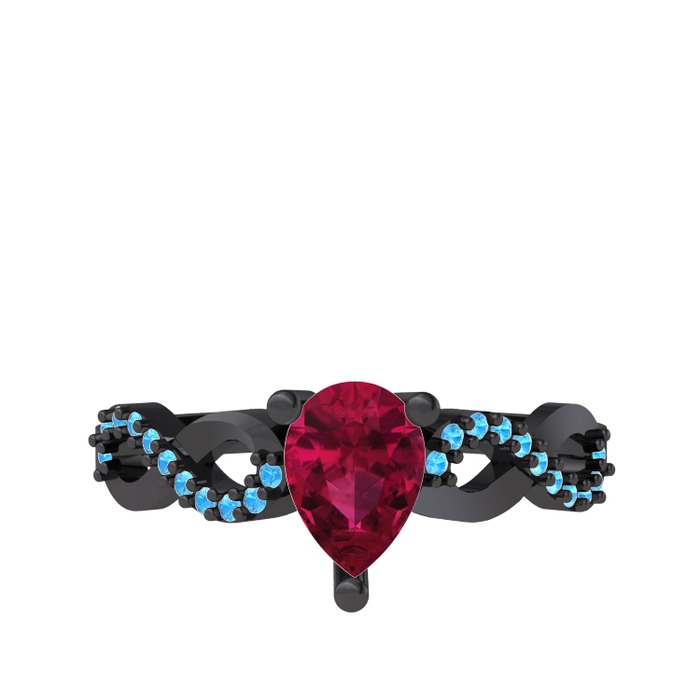 Rodolit garnet ve akuamarin 925 ayar siyah rodyum kaplama gümüş yüzük