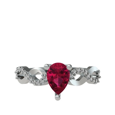 Rodolit garnet ve beyaz zirkon 14 ayar beyaz altın yüzük