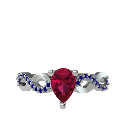 Rodolit garnet ve lab safir 14 ayar beyaz altın yüzük