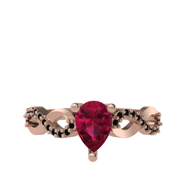 Rodolit garnet ve siyah zirkon 925 ayar rose altın kaplama gümüş yüzük