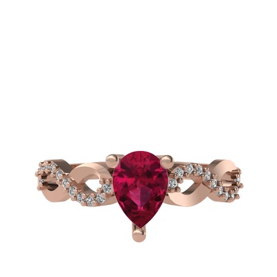 Rodolit garnet ve swarovski 18 ayar rose altın yüzük