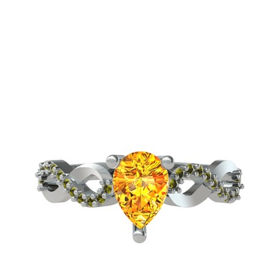 Sitrin ve peridot 18 ayar beyaz altın yüzük