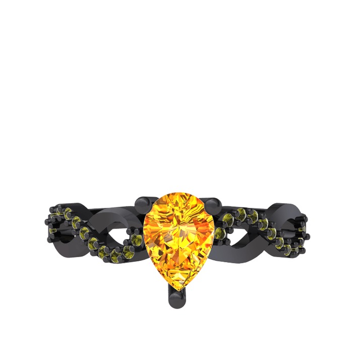 Sitrin ve peridot 925 ayar siyah rodyum kaplama gümüş yüzük