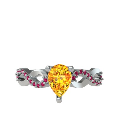 Sitrin ve rodolit garnet 14 ayar beyaz altın yüzük