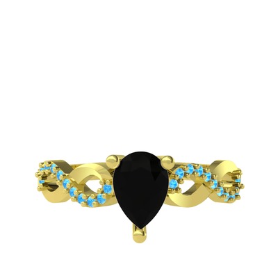 Siyah zirkon ve akuamarin 18 ayar altın yüzük