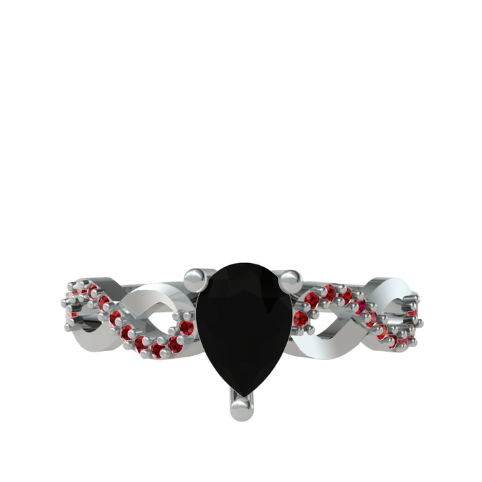 Siyah zirkon ve garnet 14 ayar beyaz altın yüzük