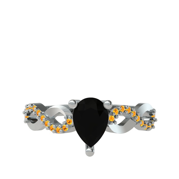 Siyah zirkon ve sitrin 8 ayar beyaz altın yüzük