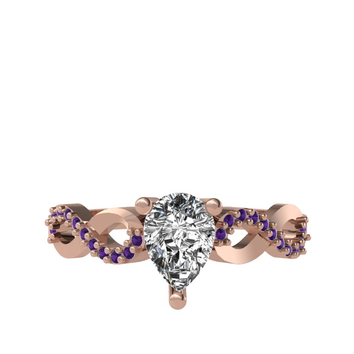 Swarovski ve ametist 18 ayar rose altın yüzük