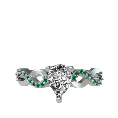 Swarovski ve yeşil kuvars 8 ayar beyaz altın yüzük