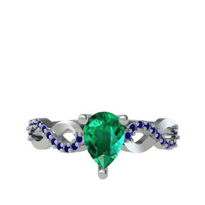 Yeşil kuvars ve lab safir 18 ayar beyaz altın yüzük