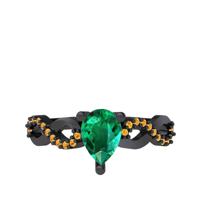 Yeşil kuvars ve sitrin 925 ayar siyah rodyum kaplama gümüş yüzük