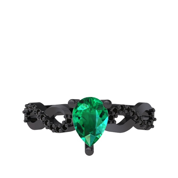 Yeşil kuvars ve siyah zirkon 925 ayar siyah rodyum kaplama gümüş yüzük