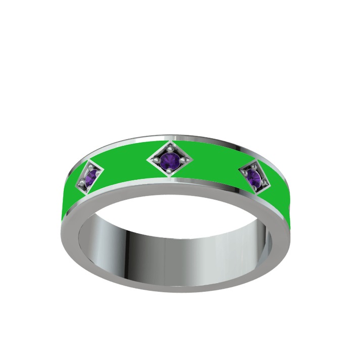 Ametist 14 ayar beyaz altın yüzük (Yeşil mineli)
