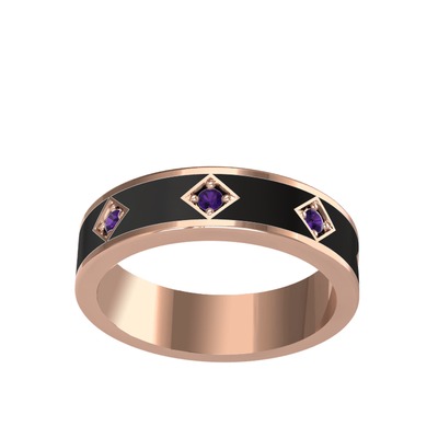 Ametist 14 ayar rose altın yüzük (Siyah mineli)