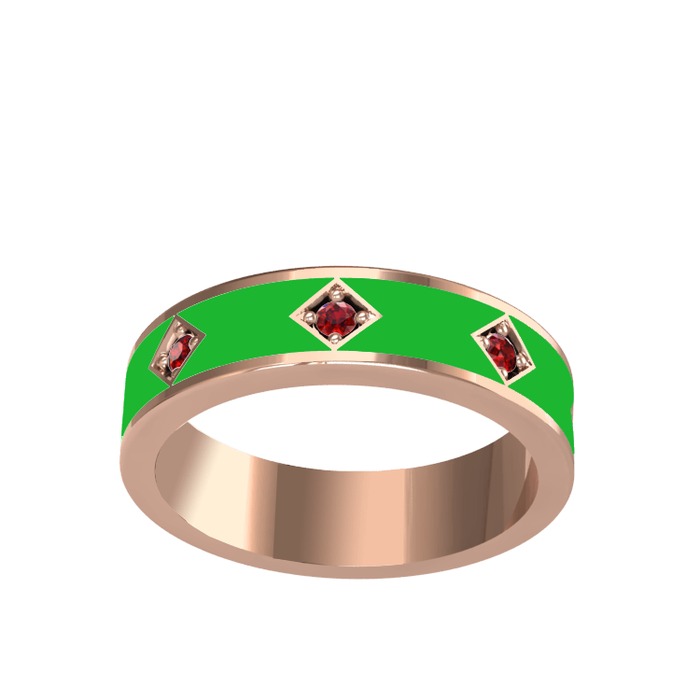 Garnet 18 ayar rose altın yüzük (Yeşil mineli)