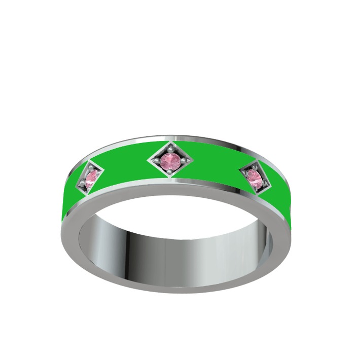 Pembe kuvars 14 ayar beyaz altın yüzük (Yeşil mineli)