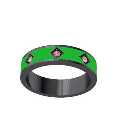 Pembe kuvars 925 ayar siyah rodyum kaplama gümüş yüzük (Yeşil mineli)