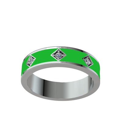 Pırlanta 14 ayar beyaz altın yüzük (0.16 karat, yeşil mineli)