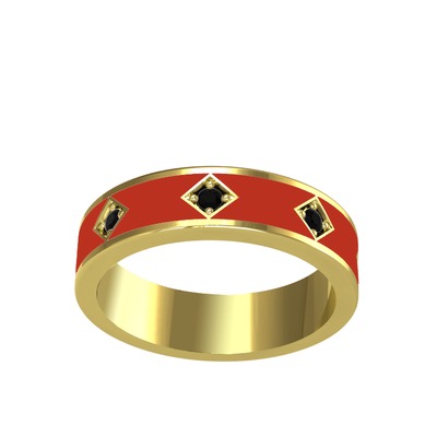 Siyah zirkon 18 ayar altın yüzük (Kırmızı mineli)