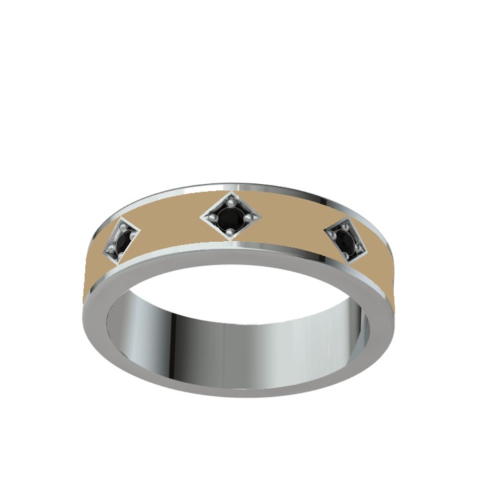 Siyah zirkon 18 ayar beyaz altın yüzük (Ekru mineli)