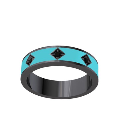 Siyah zirkon 925 ayar siyah rodyum kaplama gümüş yüzük (Turkuaz mineli)