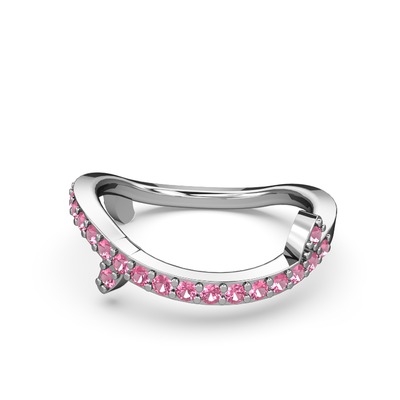 Pembe kuvars 8 ayar beyaz altın yüzük