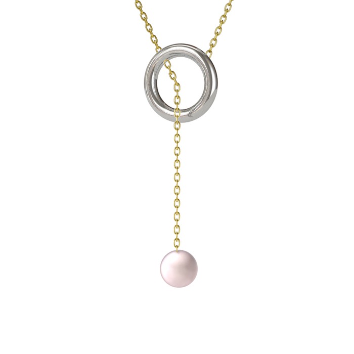 Pembe inci 18 ayar beyaz altın kolye (60 cm altın rolo zincir)