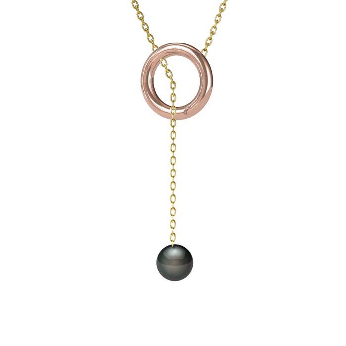 Siyah inci 18 ayar rose altın kolye (60 cm altın rolo zincir)