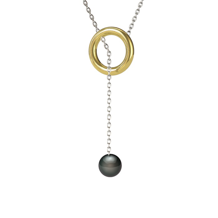 Siyah inci 8 ayar altın kolye (110 cm beyaz altın rolo zincir)